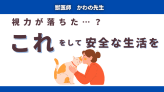 視力が落ちてきた大切な子が、安心して暮らすためのおうちでできる工夫をまとめました。家具配置・香りや音・滑り止めなど、シニア期に寄り添う優しいアイデアです。